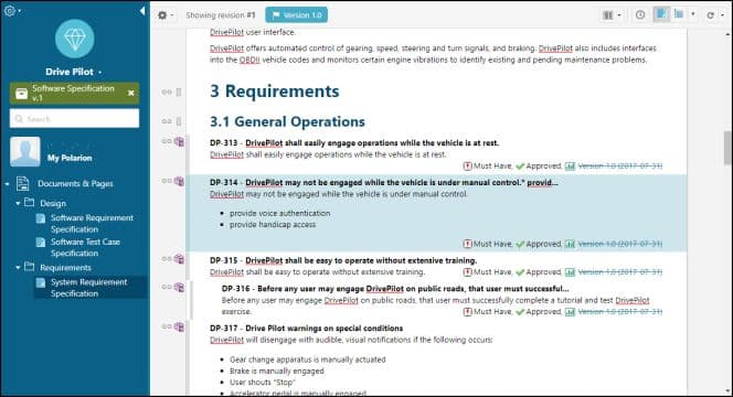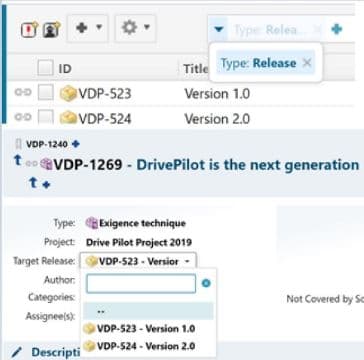 Le concept des Collections Polarion facilite le développement de projets avec ces workflows simultanés. Il permet de s’assurer de travailler avec les bonnes versions d’une spécification, que les liens créés pointent vers les bonnes versions de la spécification. La collection peut être archivée pour des besoins d’historique et réglementaires de conformité.
