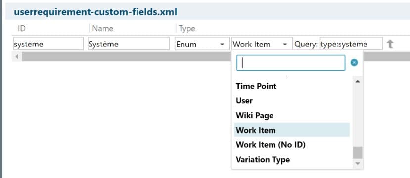 Ajouter d'autres colonnes avec d'autres types de Work Items