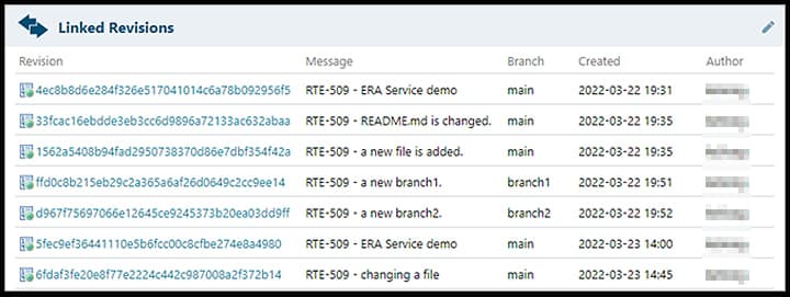 ERA supporte également les connexions à plusieurs branches de chaque référentiel connecté. Cela évite le besoin de disposer sur le serveur Polarion de clones locaux de branches de référentiel distant spécifiques (une exigence jusqu’à présent).