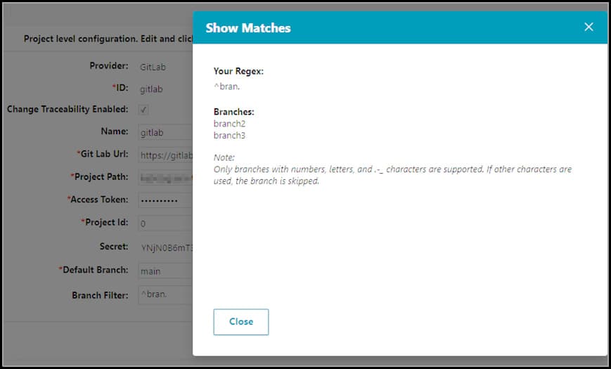 Les branches suivies peuvent être spécifiées sous forme de liste statique ou chargées dynamiquement par ERA sur la base d’une expression régulière (RegEx) qui définit un modèle d’ID de branche qui doit être automatiquement récupéré.