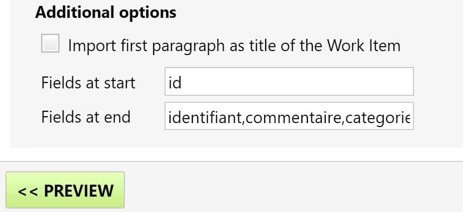 Configuration d'import optimisée Nous progressons mais nous voulons aussi récupérer les informations propres à chaque exigence, à savoir le statut, la conformité, la catégorie et enfin les commentaires additionnels. Plus encore, nous aimerions que ces lignes en bleu disparaissent du corps de texte de l'exigence, vu que nous allons les charger dans des champs dédiés. A nouveau, nous utilisons les fonctions avancées d'import, suivant le type de champ sous Polarion nous utilisons soit :