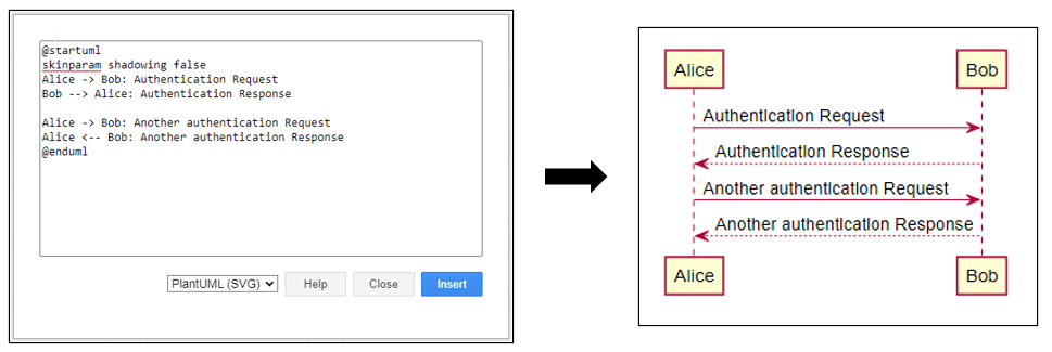 - Les diagrammes écrits en syntaxe PlantUML peuvent être insérés dans l’éditeur,