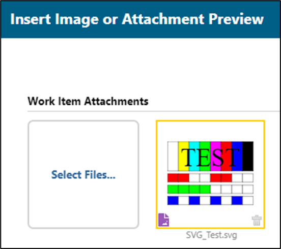 Les graphiques vectoriels au format SVG sont désormais pris en charge, ce qui permet de les insérer et les afficher dans les Documents et Work Items de la même façon que les formats d’image déjà supportés. Toutefois, pour exporter correctement des fichiers SVG au format PDF et Word, l’utilisateur doit manuellement joindre le PNG de l’image en donnant le même nom que le fichier SVG.