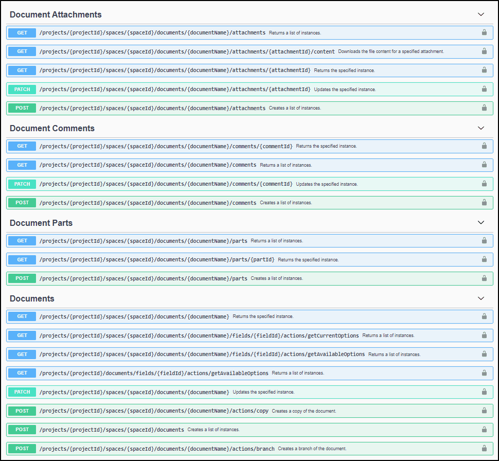 Nouveaux REST End Points pour les LiveDocs L’API REST a été étendue aux Documents pour permettre de brancher, copier des documents et utiliser leurs propriétés. Cette nouvelle version apporte une gamme complète de End Points pour manipuler les documents, y compris la création de nouveaux documents, l’utilisation du contenu des documents, des commentaires, des pièces jointes et la possibilité de créer des Work Items dans les documents ou de les déplacer entre différents documents.