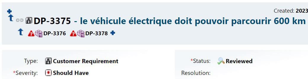 - Second moyen, qui complète le premier : Créer une nouvelle version de l’exigence, en changeant son statut, par exemple de l’état implémenté à l’état en évolution, et modifier l’exigence en regard du changement demandé.
