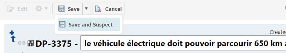 - La fonction “Save and Suspect” s’utilise désormais de la même manière dans la vue table que dans la vue détaillée des Work Items,