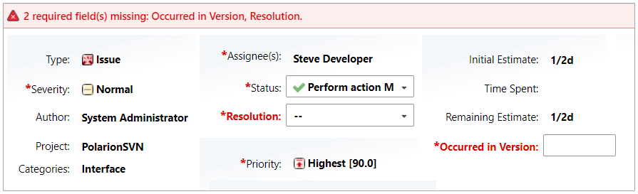 - Amélioration de la mise en évidence des champs obligatoires non renseignés facilitant l'identification des champs nécessitant de l'attention, en particulier pour les Work Items avec de nombreux champs personnalisés