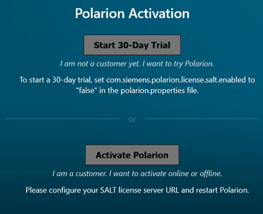 Si tel est votre souhait voici ce qu’il faudra faire pour pouvoir activer votre clé de licence : Dans le polarion.properties, veuillez mettre com.siemens.polarion.license.salt.enabled=false, puis effecteur un stop & start du service Polarion. A partir de ce moment, les boutons Start 30-Day Trial et Activate Polarion avec la clé qui vous a été fournie sont alors à nouveau accessibles ! Notez que si vous utilisez un gestionnaire de licence coordinateur (installation faite en multi-instance), veuillez également voir l’aide en ligne : https://docs.sw.siemens.com/en-US/doc/230235217/PL20240424963191224.polarion_help_sc.mzd1706003200646/jea1725004198955 Enfin s’il vous est demandé de monter de version de Polarion, sachez que les prochaines versions de Polarion arriveront en juin 2025 pour la 2506, puis en décembre 2025 pour la version 2512.