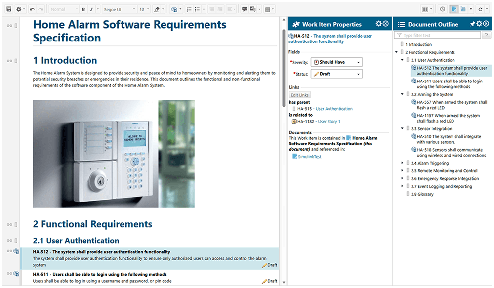 - Intégration avec des modèles MathWorks Simulink gérés en configuration et à partir de branches de documents Polarion