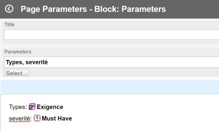 Généralement, le widget est présenté en haut de la page. Il ne peut y avoir qu’un seul Page Parameters Block par page.