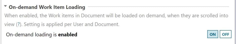 - Mettre le paramètre On demand Work Item Loading sur ON (onglet Document Properties) : cela ne se produit que quand ce Lazy Loading est sur OFF