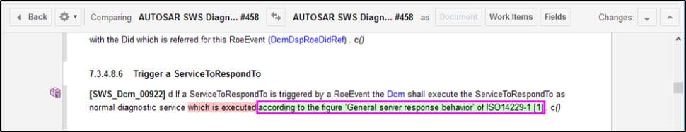 Cette fonctionnalité a été significativement améliorée afin d'accélérer la comparaison des documents très volumineux. Selon la taille et la structure du document, le nombre de Work Items et le nombre de modifications faites, le temps pour obtenir le résultat de la comparaison a été fortement réduit. Le tableau ci-dessous montre l’amélioration pour les plus grands documents usuellement utilisés par l’équipe R&D de Polarion pour les tests de performances.