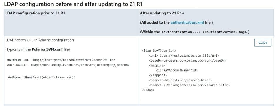 Montée en version Polarion ALM 21 R1 avec un LDAP existant