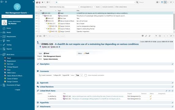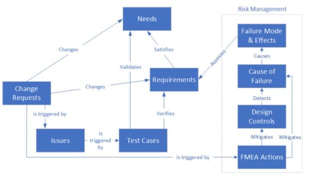 Considérons ce modèle simple, qui porte notamment sur la mise en œuvre de la gestion des risques FMEA sous Polarion.
