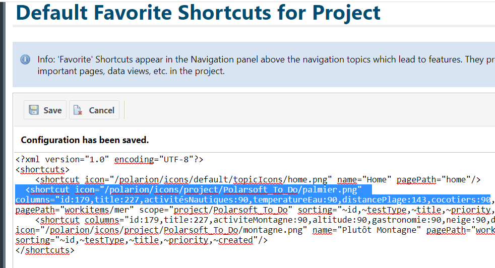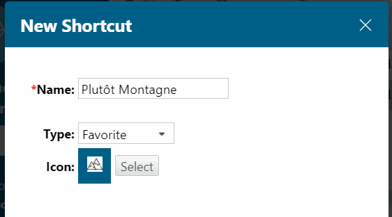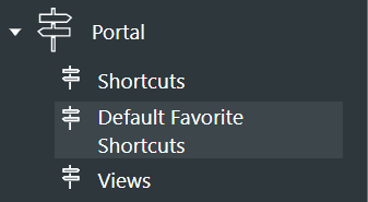 Si un administrateur désire proposer ces favoris par défaut à ses utilisateurs, il peut les inclure via la définition des Default Favorite Shortcuts sous le menu Portal.