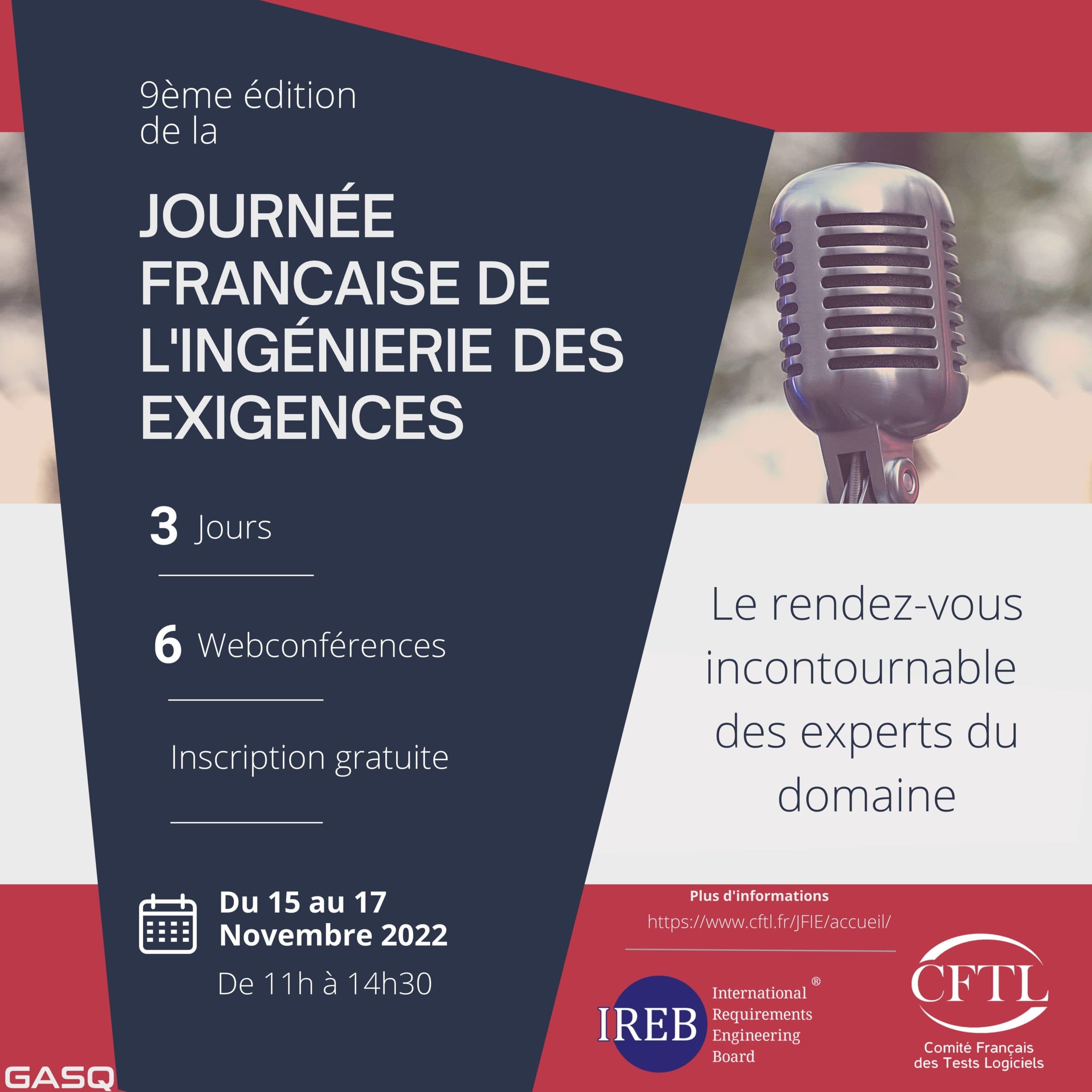 Enfin nous seront présent à la 9ème édition de la Journée Française de l’Ingénierie des Exigences qui sera réalisée sous forme de webconférences du 15 au 17 novembre.