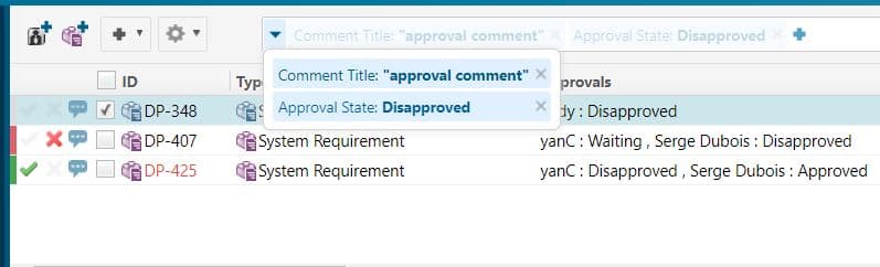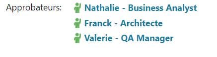 - L’alignement du workflow de l’exigence en fonction de la revue par les approbations ; ainsi une exigence ne pourra pas passer en état approuvée, si des approbations restent en état waiting,