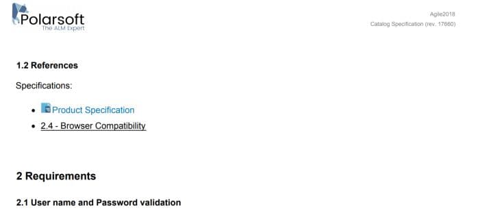 L’export Word (Round Trip) préserve le renvoi créé sous Polarion, mais la navigation n’est pas possible dans le document exporté. Si vous êtes en attente de cette fonctionnalité, merci de nous en faire part en adressant une demande d’évolution au support Polarsoft, afin que celle-ci puisse être priorisée auprès de la R&D de Polarion.