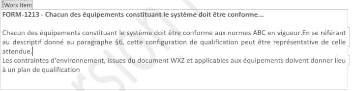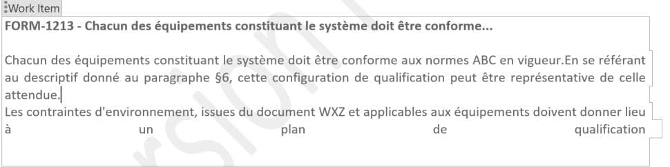 Nous retrouvons alors le texte du Work Item correctement justifié dans le document exporté.
