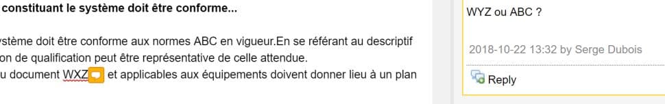Autre situation, vous utilisez la fonction Word Round Trip pour permettre aux relecteurs de mettre des commentaires dans le document exporté vers Word et réintégrer ces revues ensuite dans le référentiel Polarion. Malheureusement, le nom de la personne ayant mis le commentaire n’apparait pas une fois réimporté sous Polarion, juste « By Auteur » !