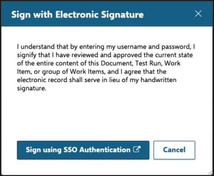 L’utilisation de la signature électronique avec l’authentification SSO (Single Sign-On) nécessitait une connexion LDAP supplémentaire vers votre fournisseur d’identité. Pour simplifier les configurations pour des fournisseurs d’identité Cloud tels que Okta, Polarion 20 R2 s’appuie désormais sur la source d’authentification SSO pour valider la signature.