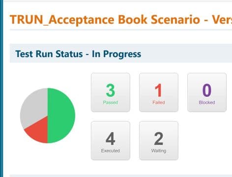 Autre fonctionnalité de ce Select from LiveDoc on Execute est la dynamique de proposition des tests à couvrir dans le Test Run, en fonction de l'évolution de la spécification, par ex. la création ou le rattachement de nouveaux cas de tests au scénario. Considérons donc que mes quatre tests aient été exécutés mais que la campagne soit toujours en cours, et que le gestionnaire des tests spécifie deux nouveaux tests dans le LiveDoc, ceux-ci seront automatiquement proposés au testeur (2 waiting) sans aucune sélection manuelle.