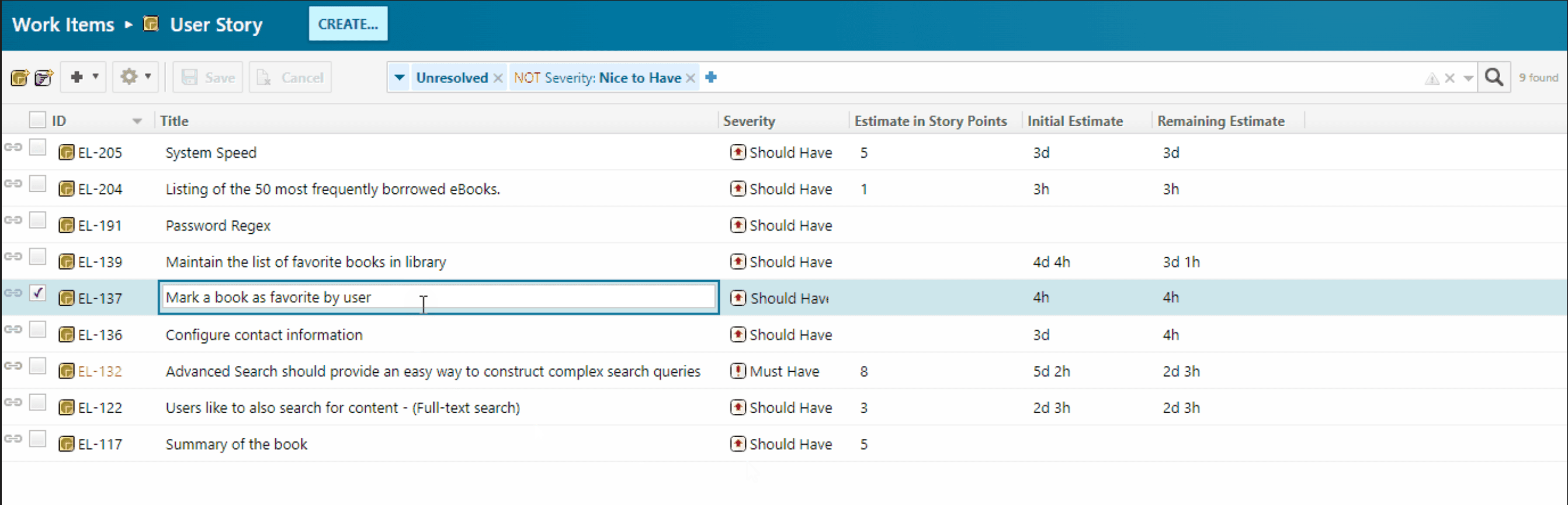 Edition en ligne dans la vue table – Mettez à jour efficacement plusieurs Work Items dans la vue table.