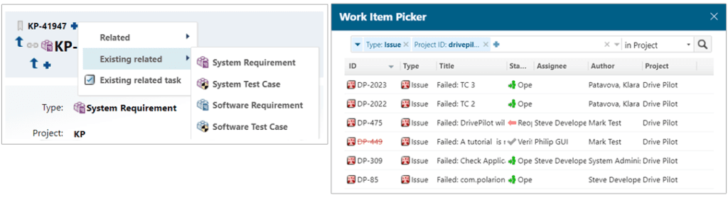 Amélioration de la création de liens entre Work Items via les Form Menus
