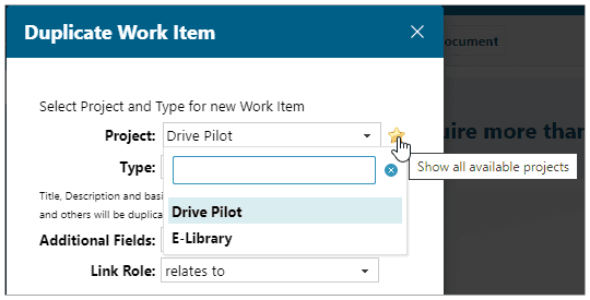 Sélectionner un projet cible à partir de vos favoris lors de la duplication d’un Work Item