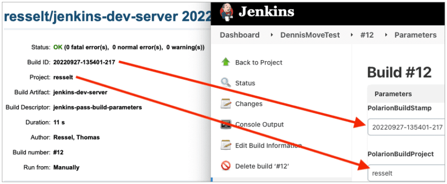 La traçabilité entre Polarion et Jenkins a été améliorée en permettant de passer des données du Build Polarion au Build Jenkins, lui-même déclenché à partir de Polarion - à savoir le Build ID et le projet et l’ID de l’utilisateur qui a déclenché le Build.