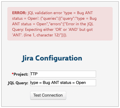 Les requêtes JQL (Jira Query Language) renseignées pour cibler les données Jira à synchroniser avec Polarion sont désormais validées syntaxiquement. La requête est émise vers l’instance Jira configurée qui renvoie les erreurs éventuelles de syntaxe dans la requête.