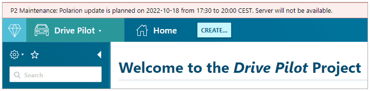Barre de notification Polarion pour alerter de l’indisponibilité du serveur
