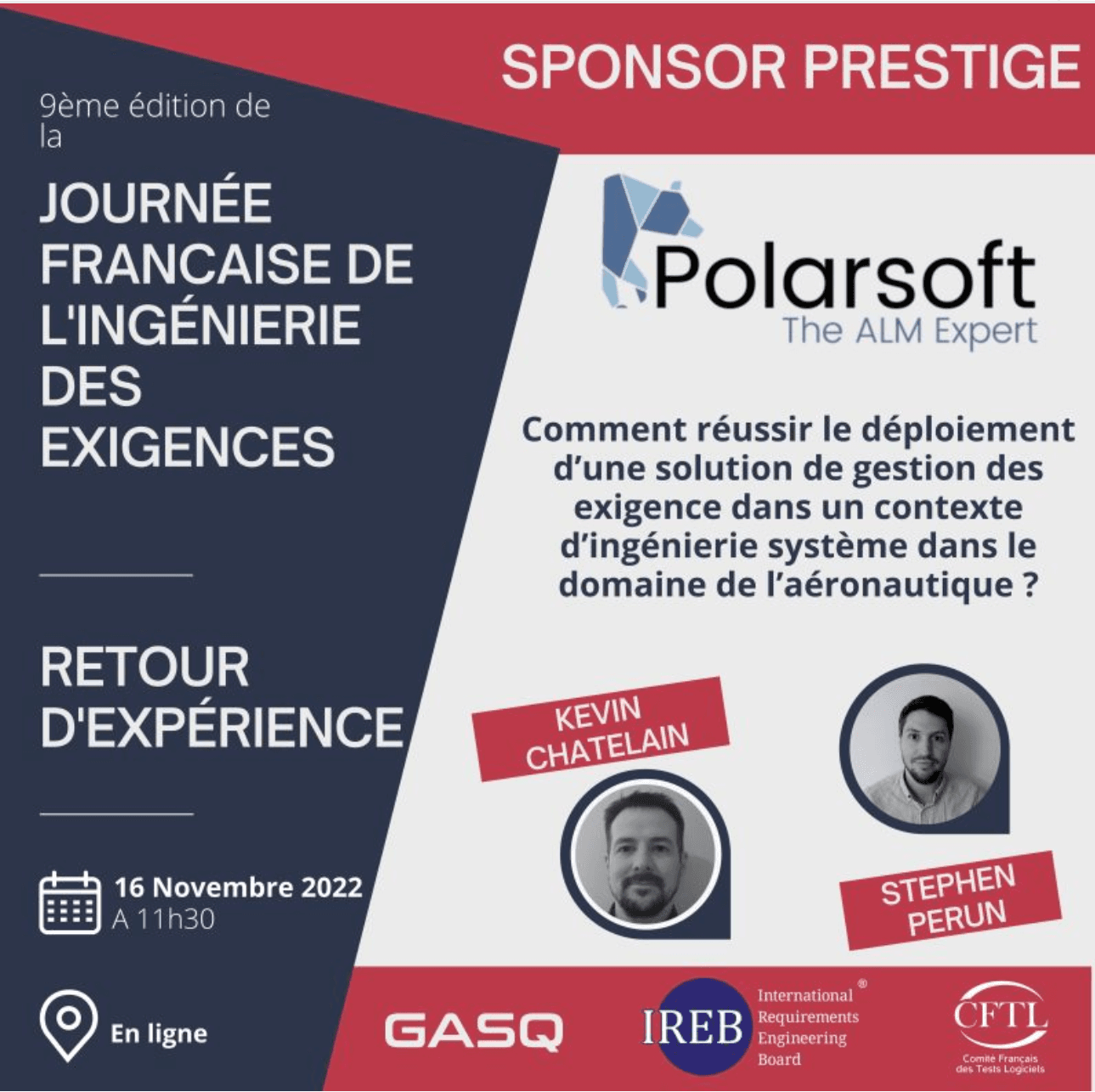 Polarsoft est sponsor Prestige à la Journée Française de l’Ingénierie des Exigences (JFIE) qui pour la 2nde fois est organisée sous forme de conférences accessibles en ligne, du 15 au 17 novembre 2022.