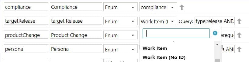 Un paramètre Query est requis pour ces options ; il permet de cibler les Work Items dont on veut utiliser les valeurs, par exemple pour notre champ target release nous renseignons la requête :
