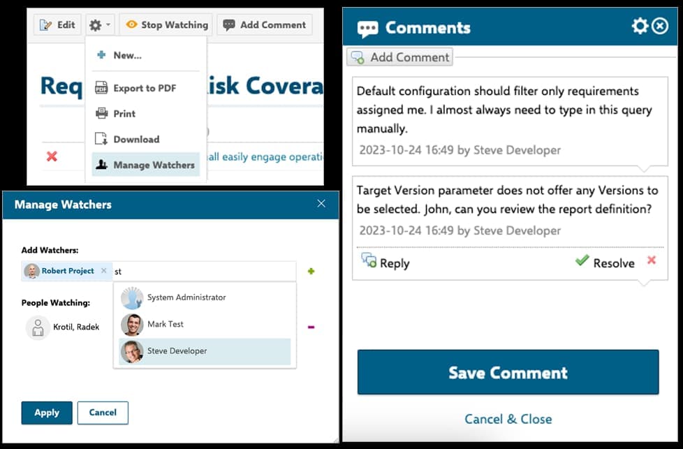 Cette nouvelle amélioration garantit que vous avez un contrôle total sur qui peut accéder, modifier ou gérer les espaces et les artefacts au sein de Polarion 2310, offrant une sécurité renforcée et une personnalisation accrue pour mieux répondre aux besoins des équipes.