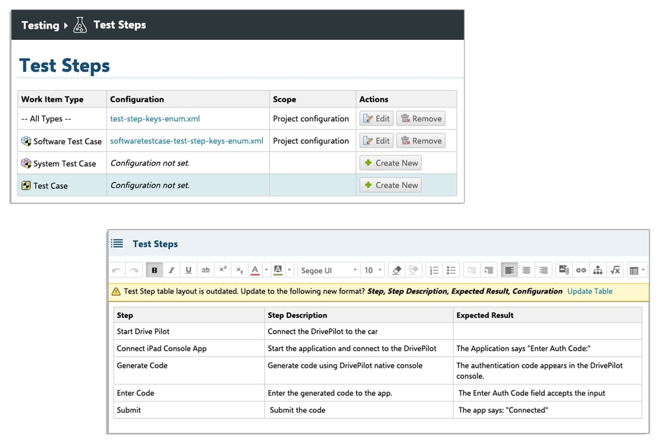 Avec Polarion 2310, cette configuration sur mesure des étapes de test permet de mieux prendre en compte les spécificités de chaque type de test en terme de définition et d’exécution de ces tests