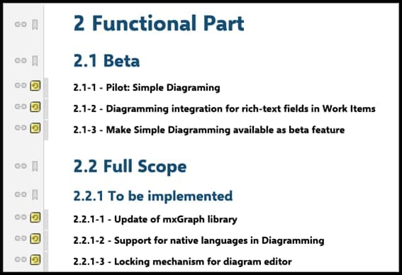 - Si la branche est faite à partir d’une révision donnée du document principal, alors les exigences de la branche seront figées sur cette révision