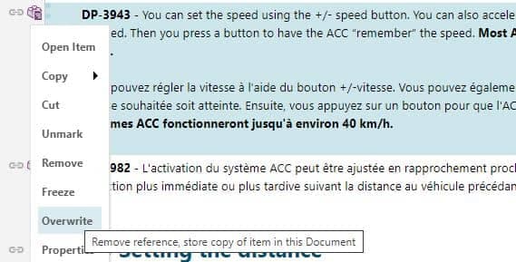 Et voici le résultat de l’ Overwrite , une nouvelle exigence avec un nouvel identifiant, qui estdonc modifiable et détachée du document principal , donc si l’exigence deréférence change, cette exigence ne change pas.